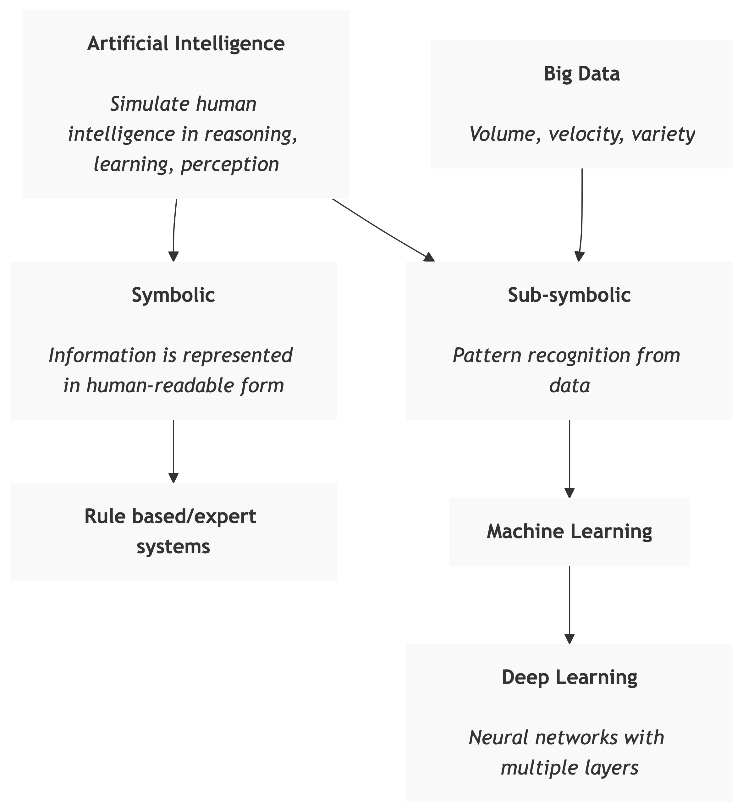 Learning/Training: Machine Learning employs adaptive models, which are configured and parameterised automatically based on the training data.